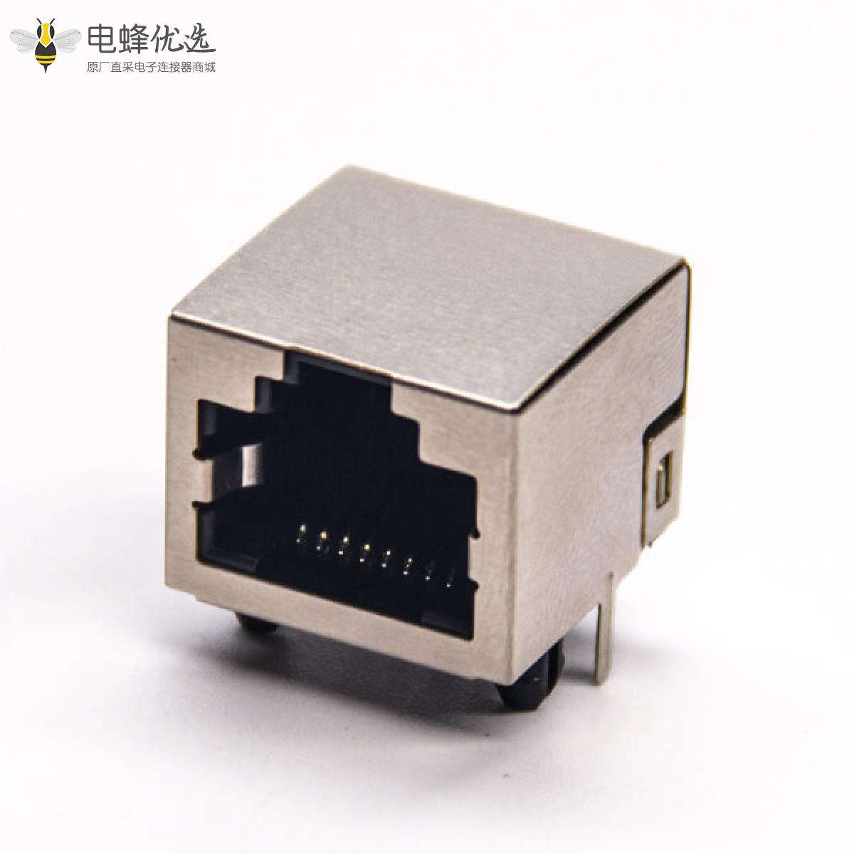 带屏蔽罩rj45单端口8p8c母座穿孔式接PCB板带定位柱