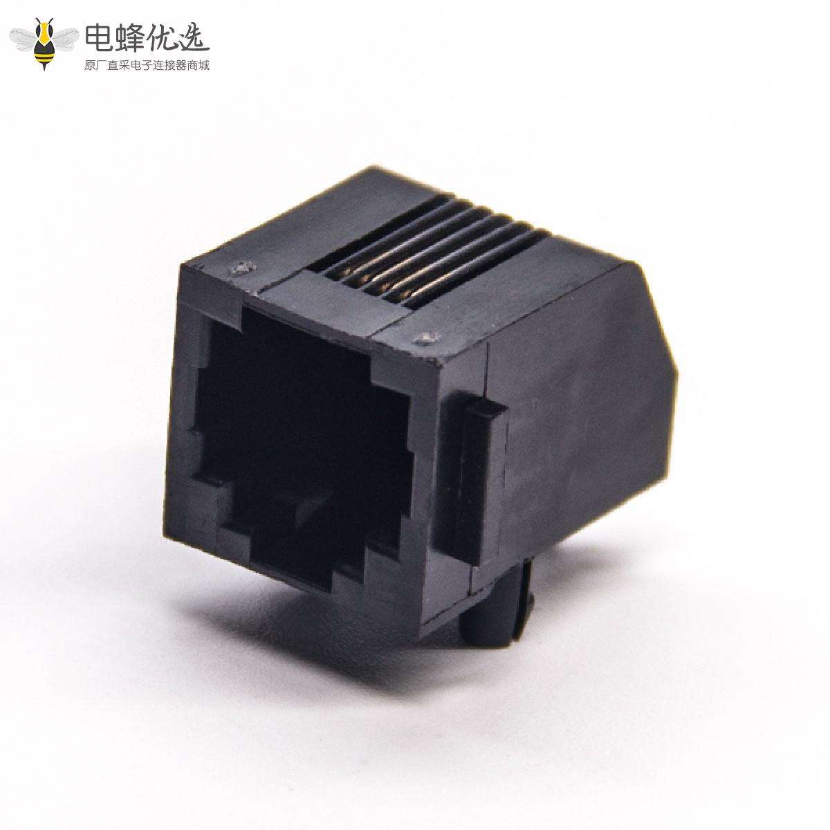 RJ11插座,4P4C,单端口,1*1,弯式45°,触头镀金,插孔,PCB板安装,非屏蔽,不带灯,不带滤波;