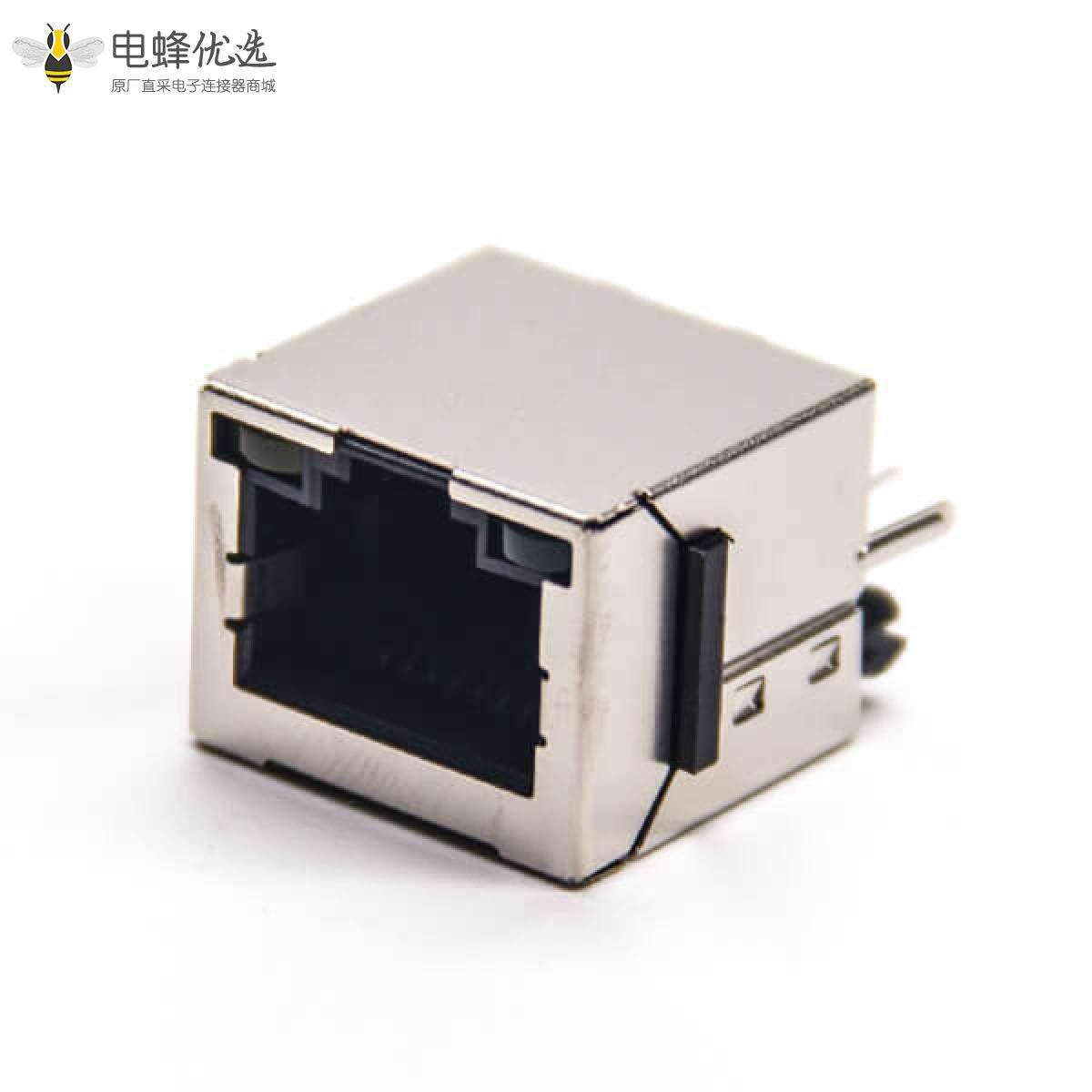 RJ45插座,8P8C,单端口,1*1,直式180°,触头镀金,插孔,PCB板安装,带屏蔽,带灯,不带滤波;