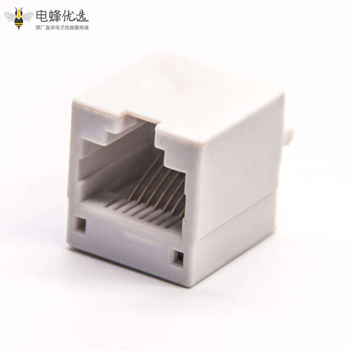 RJ45插座,8P8C,单端口,1*8,直式180°,触头镀金,插孔,PCB板安装,非屏蔽,不带灯,不带滤波;