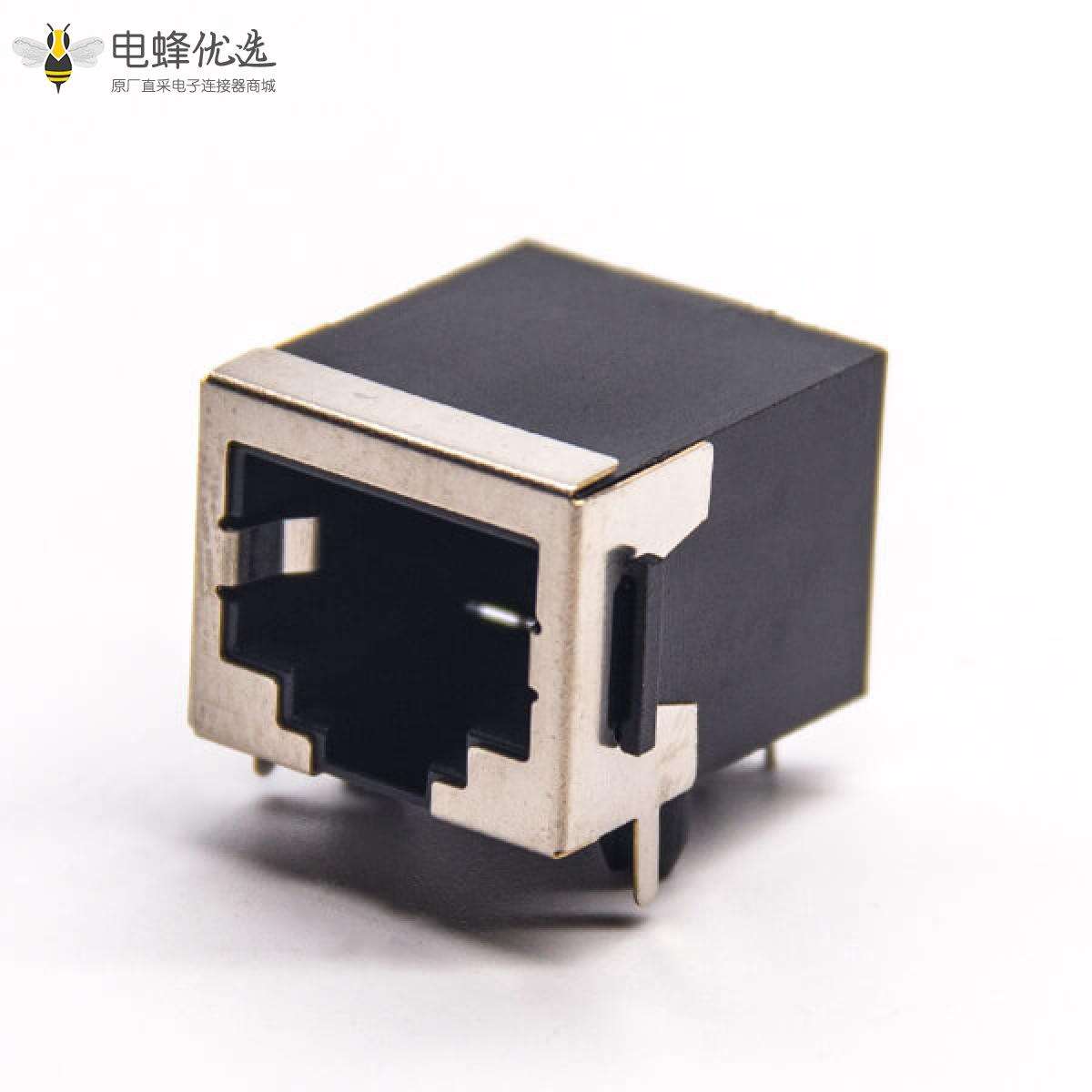 RJ45插座,8P8C,单端口,1*1,弯式90°,触头镀金,插孔,PCB板安装,带屏蔽,不带灯,不带滤波;