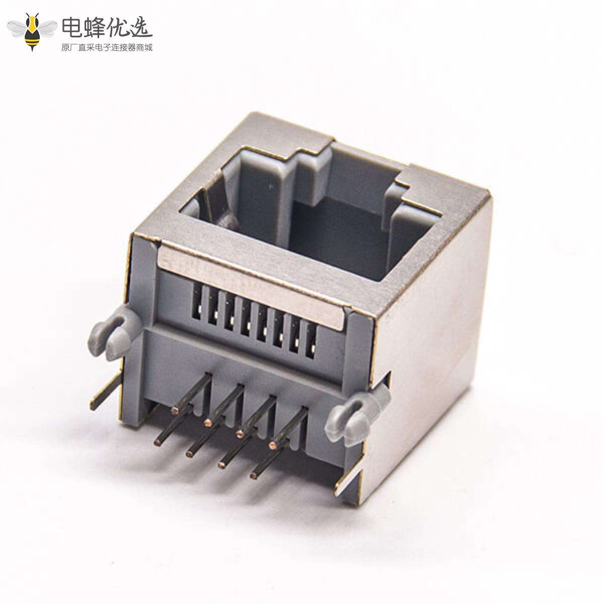 RJ45插座,8P8C,单端口,1*1,弯式90°,触头镀金,插孔,PCB板安装,带屏蔽,不带灯,不带滤波;