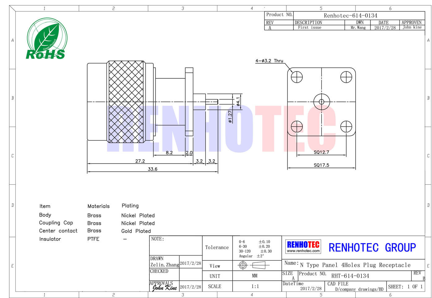 描述:产品特征:n连接器,公头,50欧,直式,4孔法兰,面板安装;高性能连接器,频率范围达0到11GHz,阻抗50欧姆;螺纹连接结构,保证产品在振动环境使用时的耐久性和稳定性;中型尺寸,可用于工防、工业或消费电子等领域;高质量原厂出货,30天无忧退换货;来自品牌OEM原厂批发,相同质量,更实惠的价格。N连