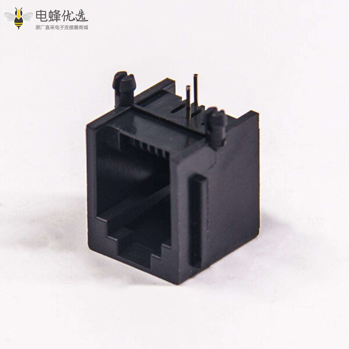 RJ11插座,6P2C,单端口,1*1,弯式90°,触头镀金,插孔,PCB板安装,非屏蔽,不带灯,不带滤波;