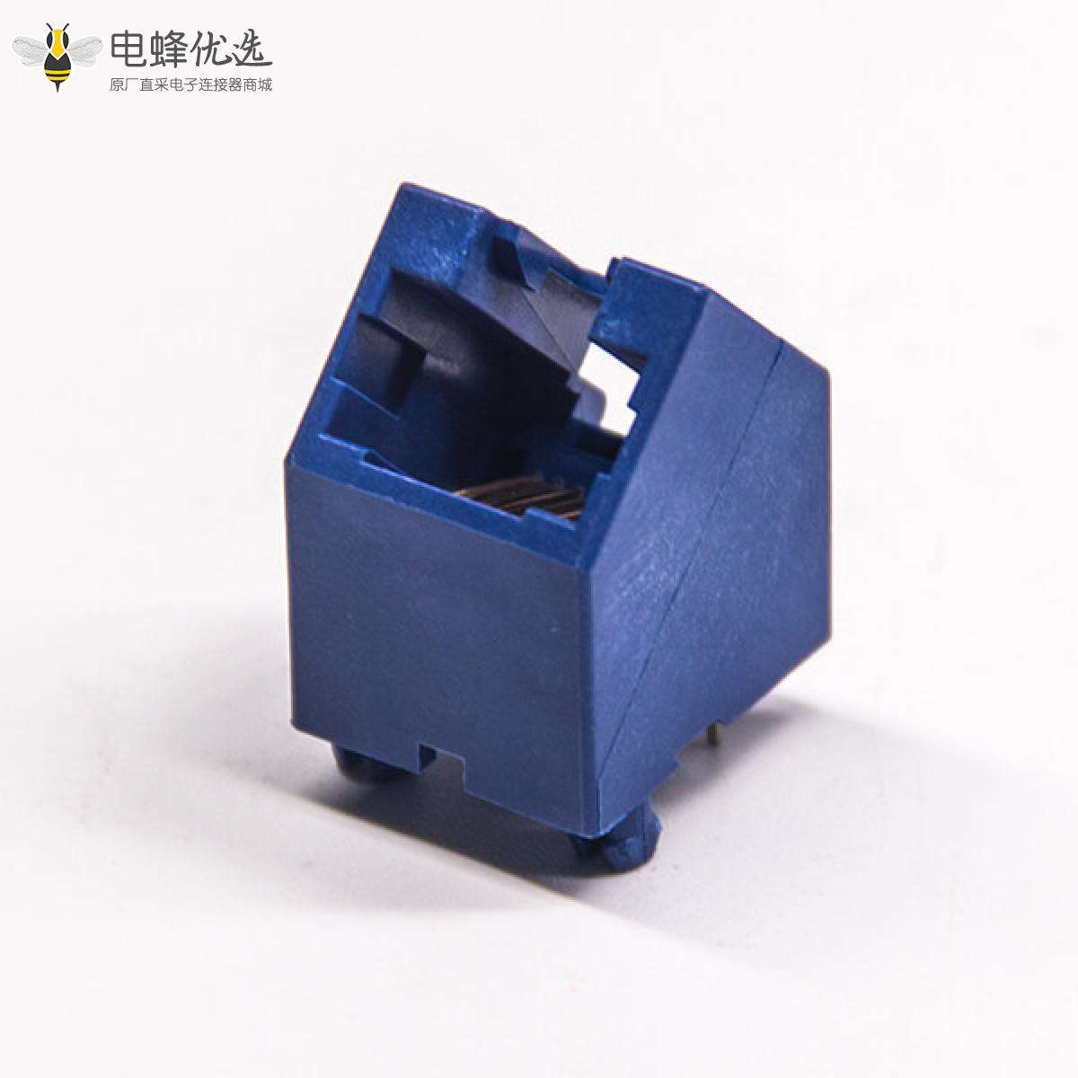 RJ45插座,8P8C,单端口,1*1,弯式45°,触头镀金,插孔,PCB板安装,非屏蔽,不带灯,不带滤波;