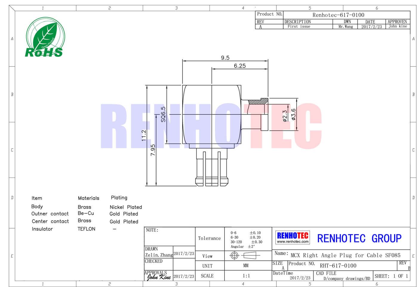 - mcx连接器,同轴线缆,公头,50欧,弯式,SF085,焊接
