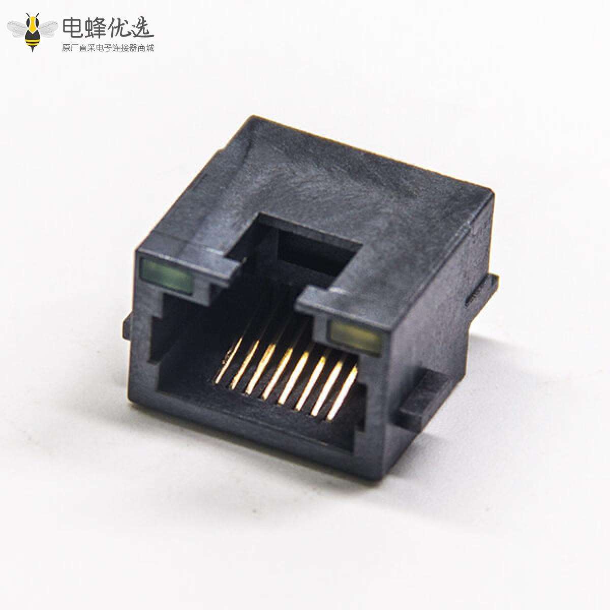 RJ45插座,8P8C,单端口,1*1,弯式90°,触头镀金,沉板,插板,非屏蔽,带灯,不带滤波;