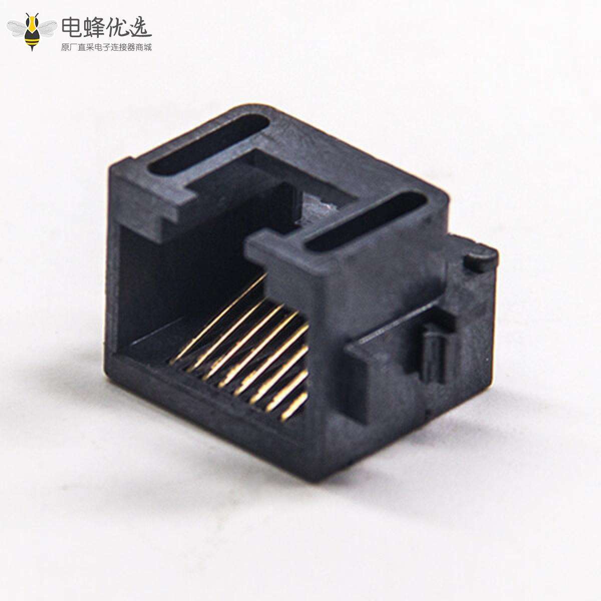 RJ45插座,8P8C,单端口,1*1,弯式90°,触头镀金,沉板,贴板,带屏蔽,不带灯,不带滤波;