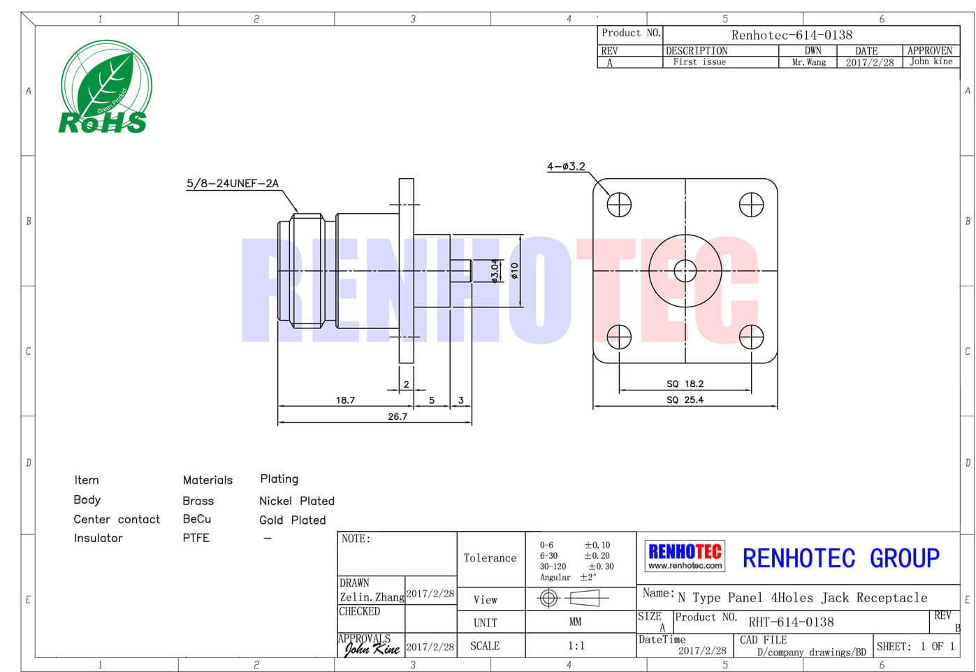 | Insulator | PTFE | -- | |