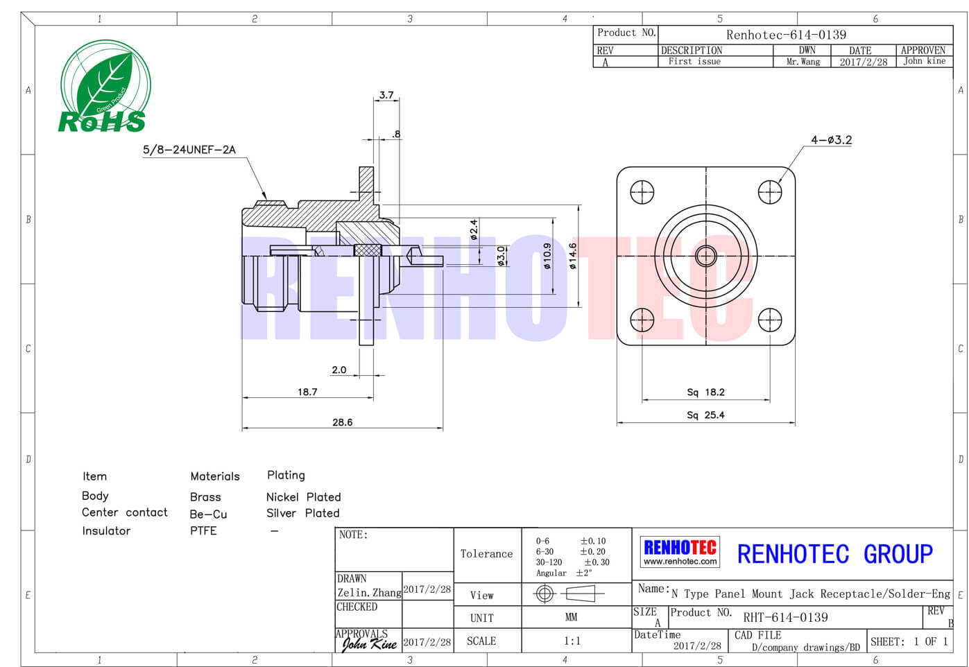 | Insulator | PTFE | -- | |