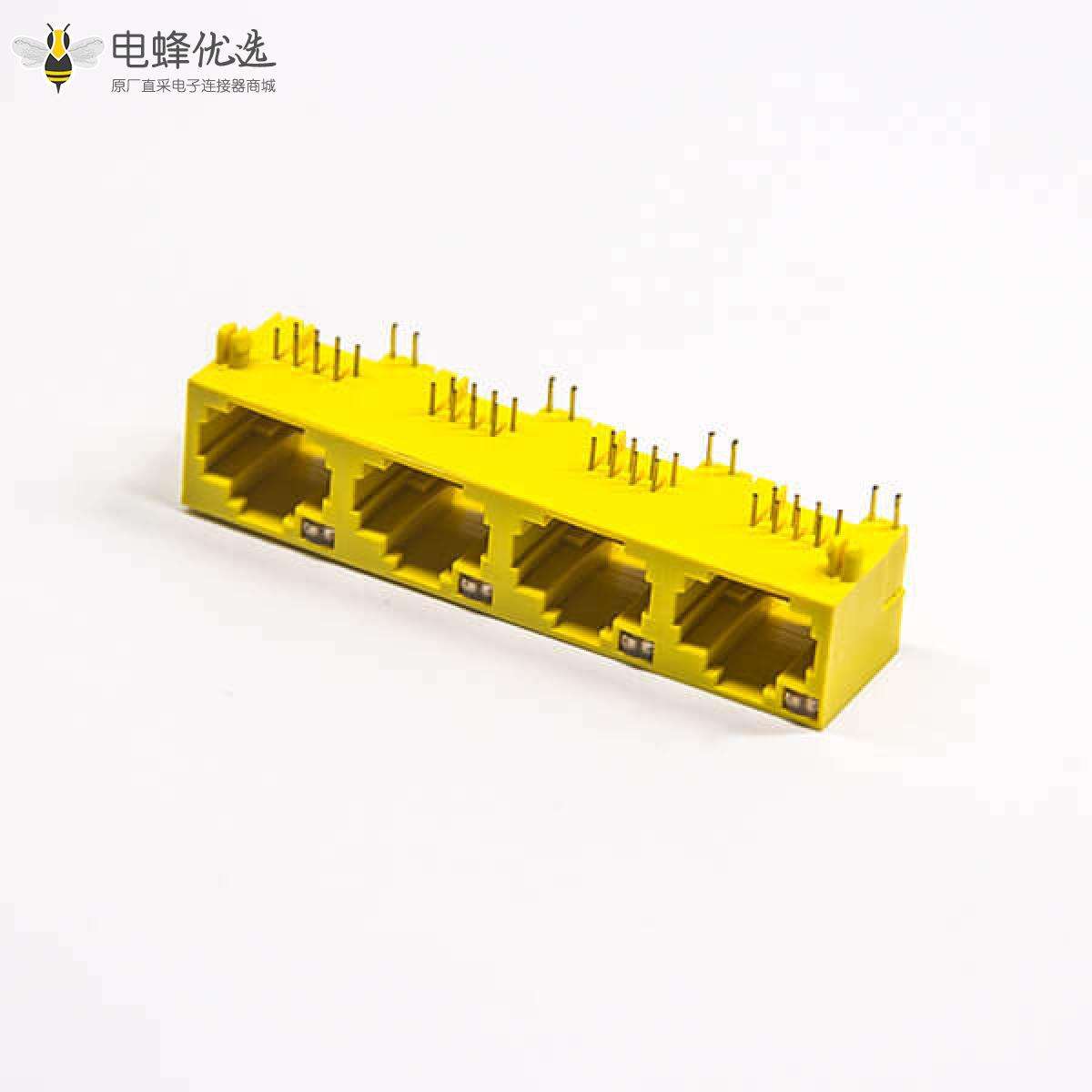 黄色 RJ45母座单层多端口1x4 非屏蔽式带灯插PCB板
