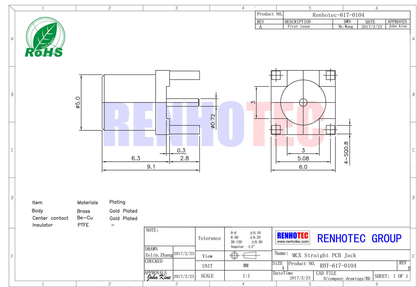 | 中心针 | Be-Cu | Gold Plated | |