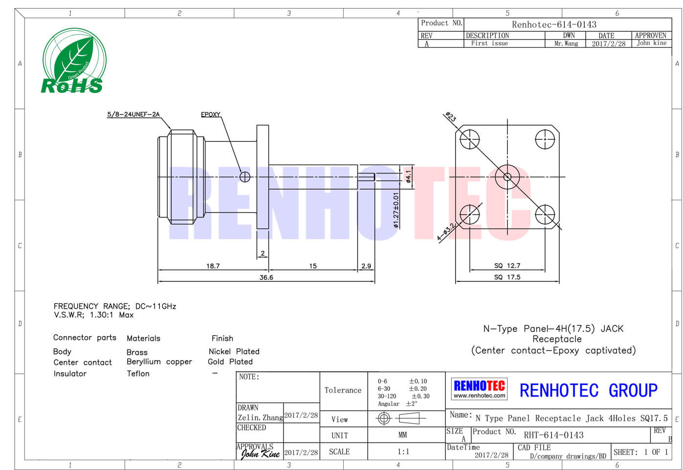 - 高性能连接器,频率范围达0到11GHz,阻抗50欧姆;