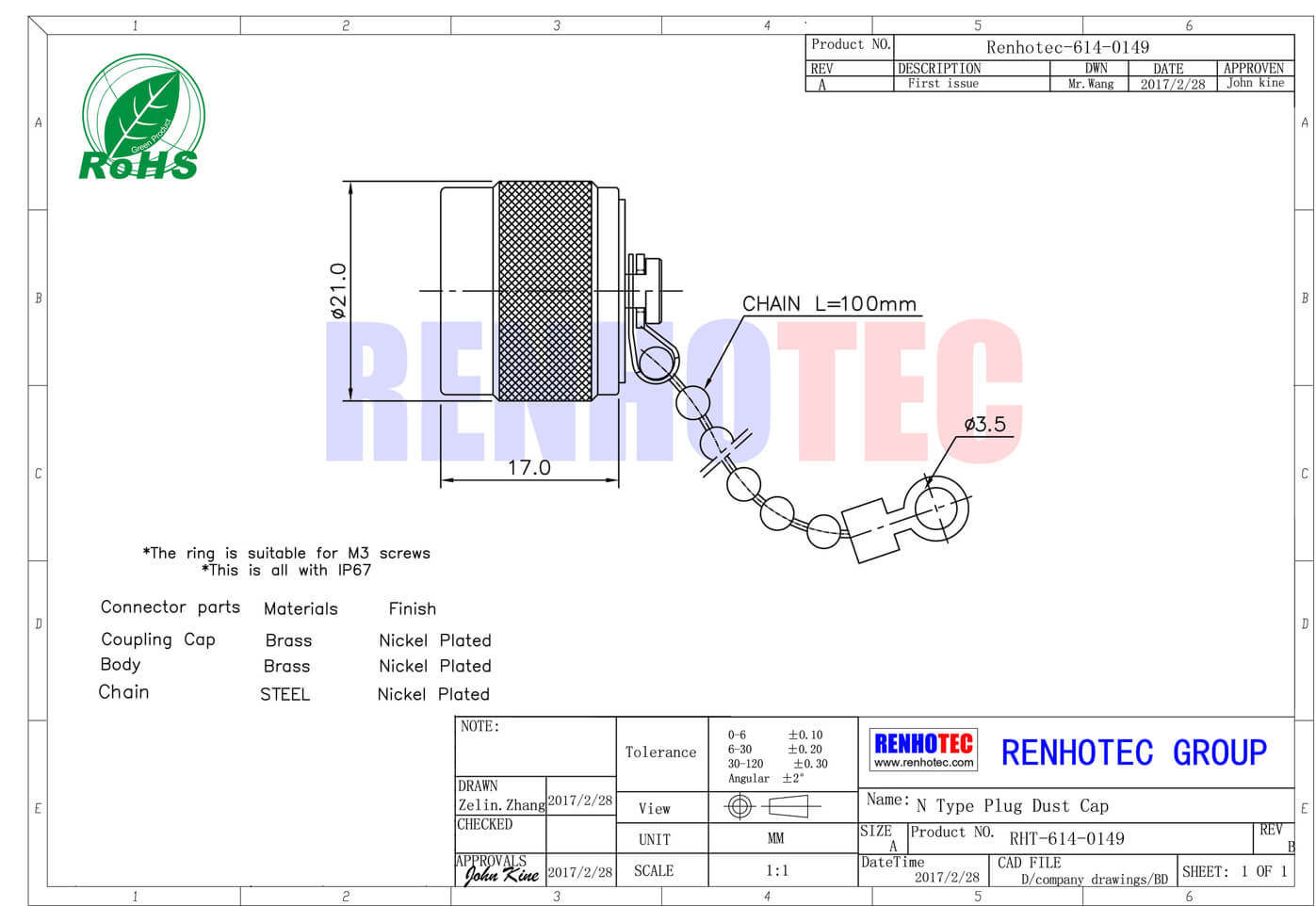 - 高性能连接器,频率范围达0到11GHz,阻抗50欧姆;