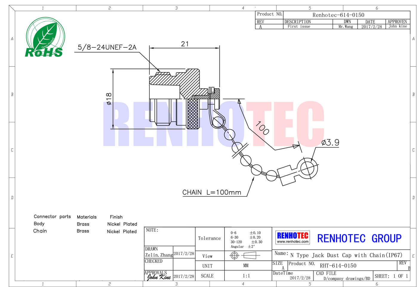 - n型母头,直式,防尘盖,链条;