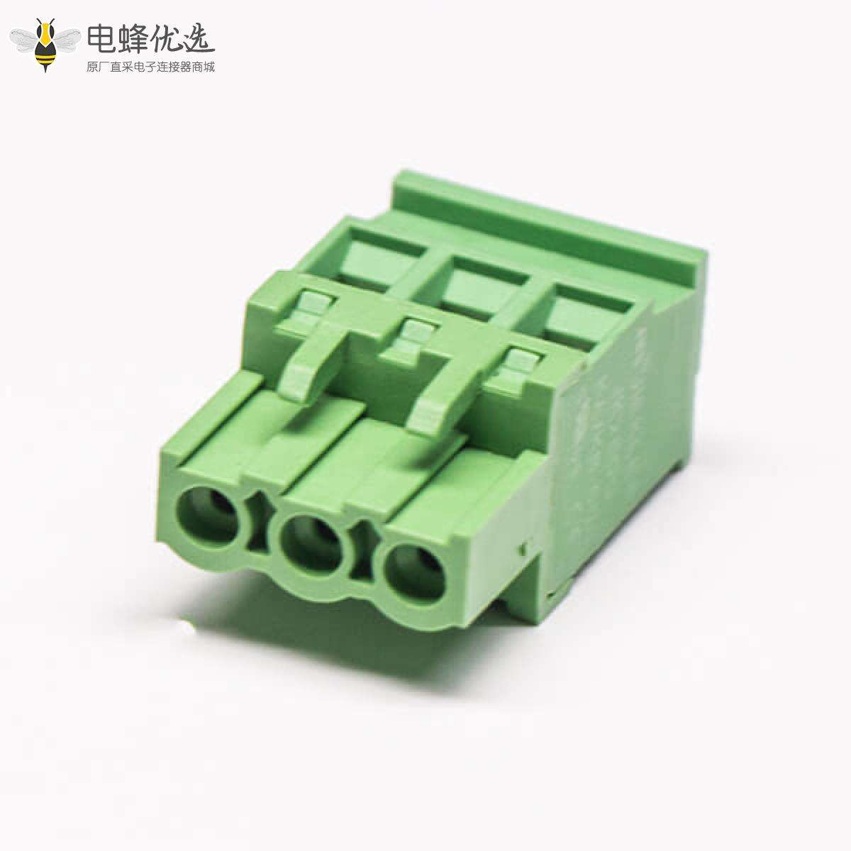 插拔式端子,绿色,直式,3芯,300V,20A,5.00/5.08mm,插孔,螺钉夹紧;