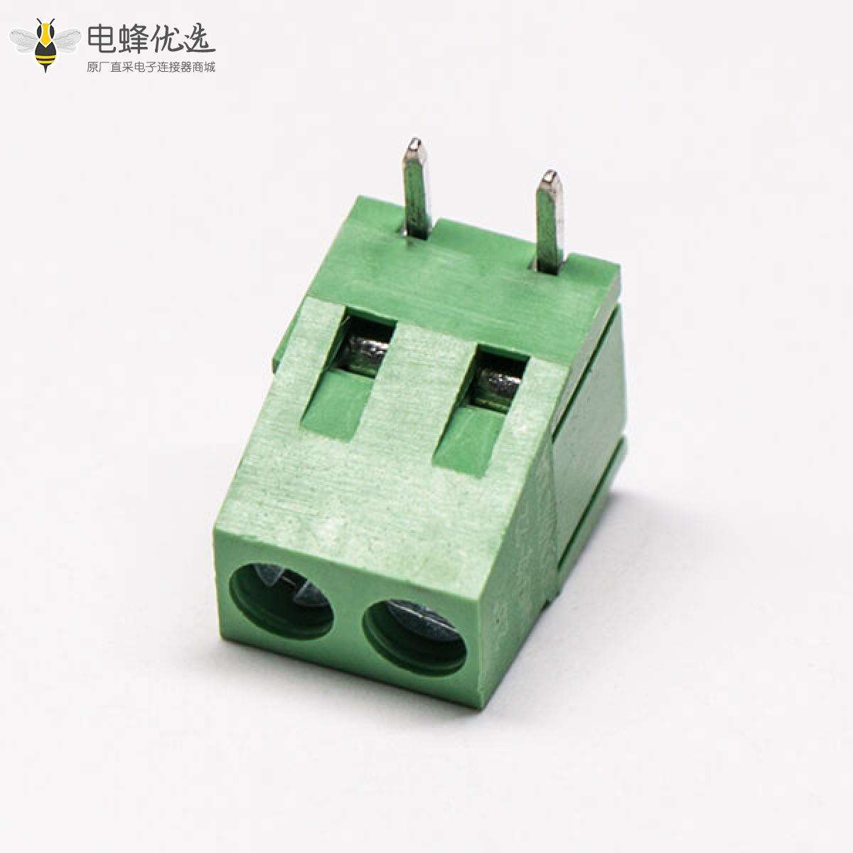 螺钉式端子,绿色,弯式,2芯,300V,15A,5.00/5.08mm,插孔,螺钉夹紧;