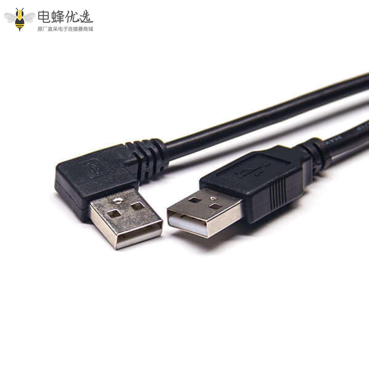 USB 2.0线材,Type A,公头,左弯,Type A,公头,直式;