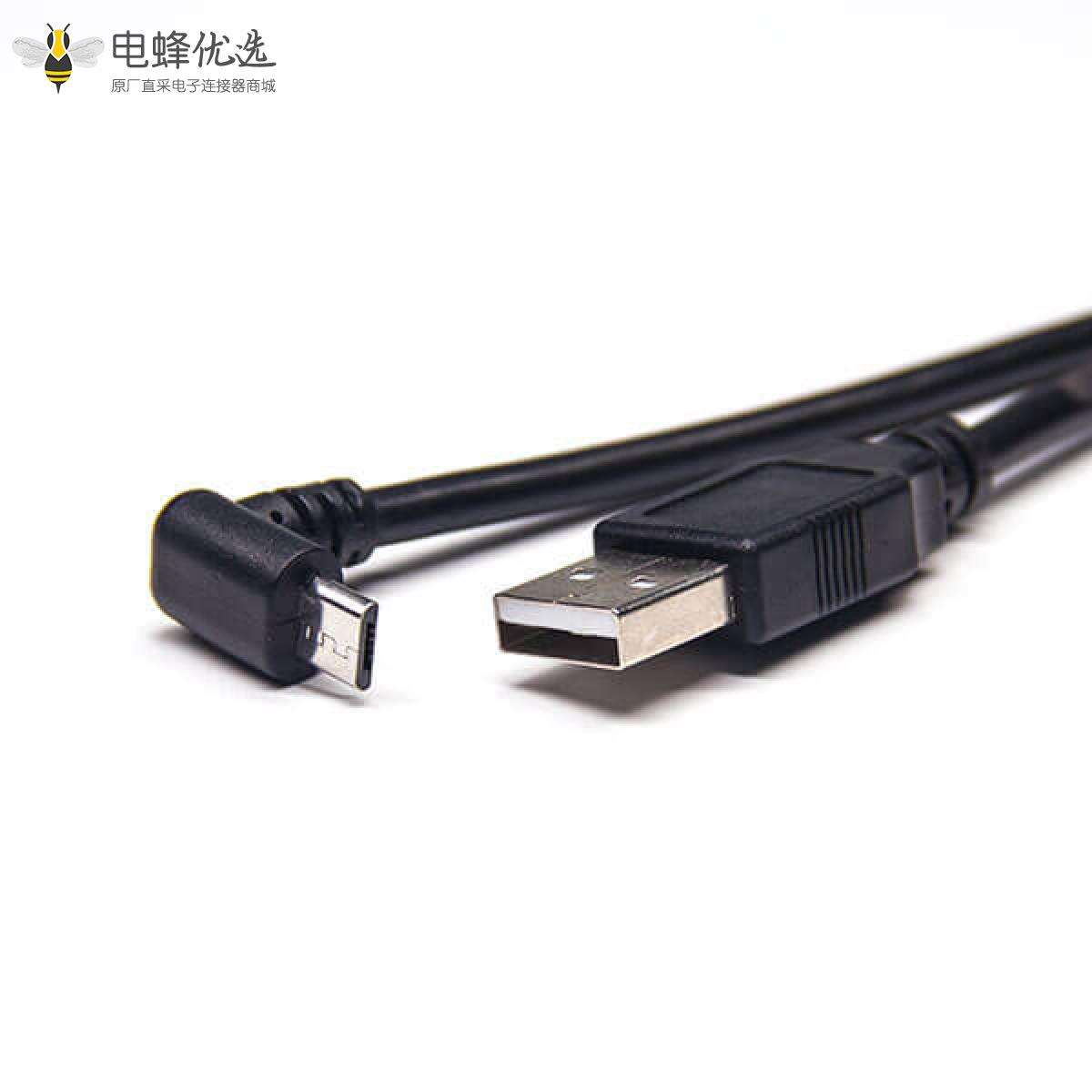 USB 2.0线材,Type A,公头,直式,Mirco-B,公头,下弯;