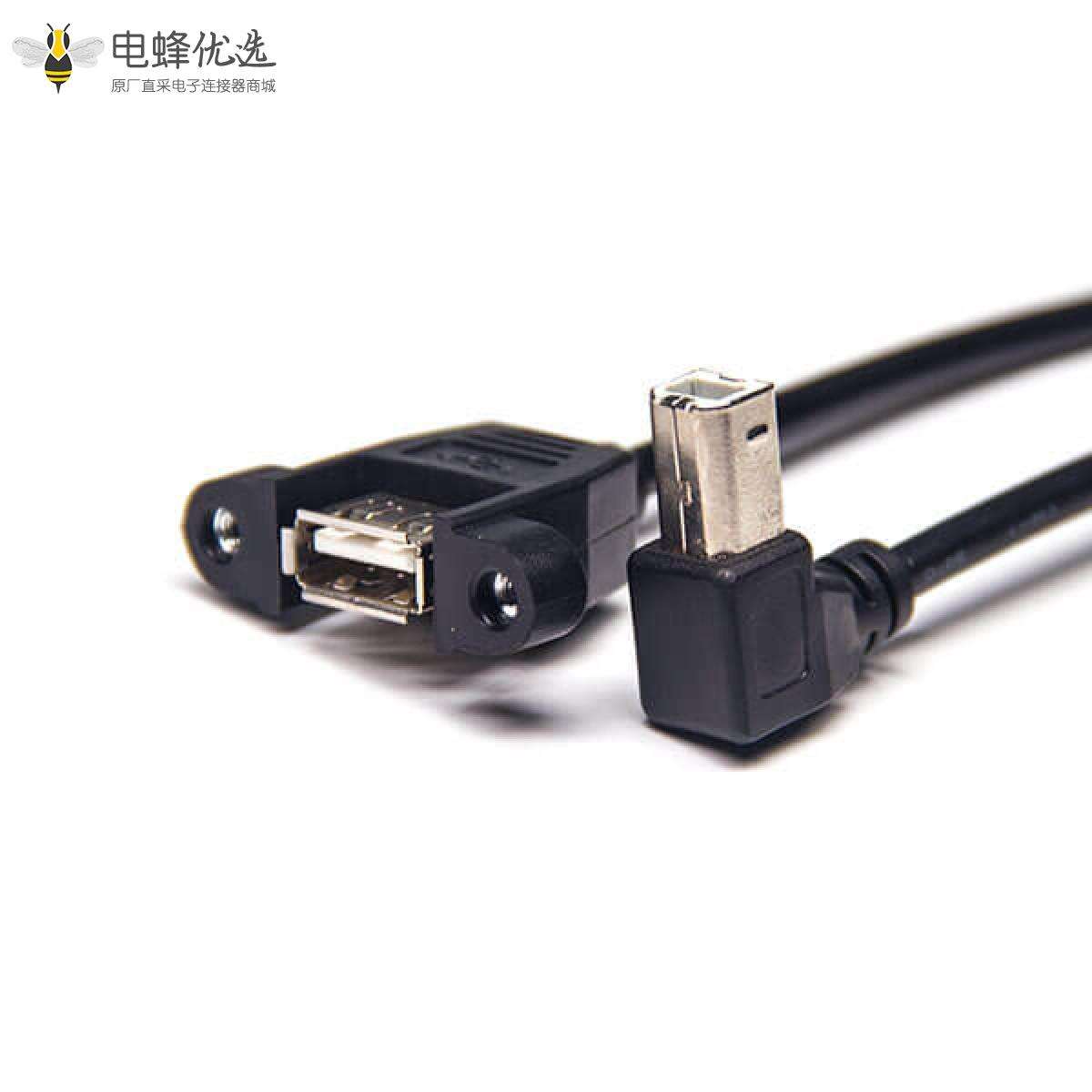 USB 2.0线材,Type A,母头,直式,Type B,公头,上弯;