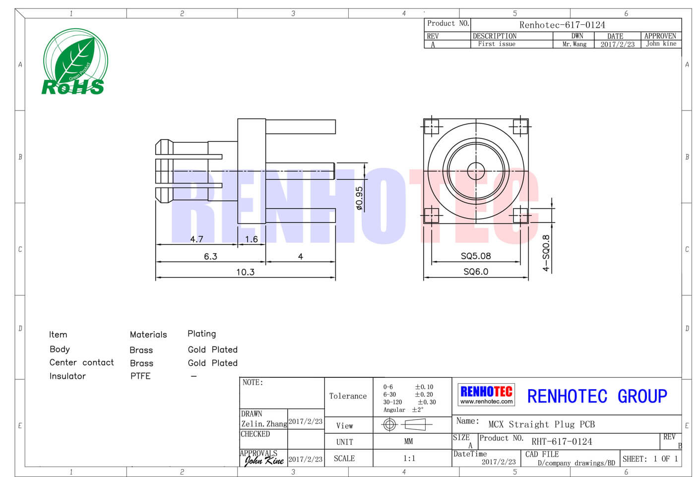 - mcx连接器,pcb板,公头,50欧,直插;