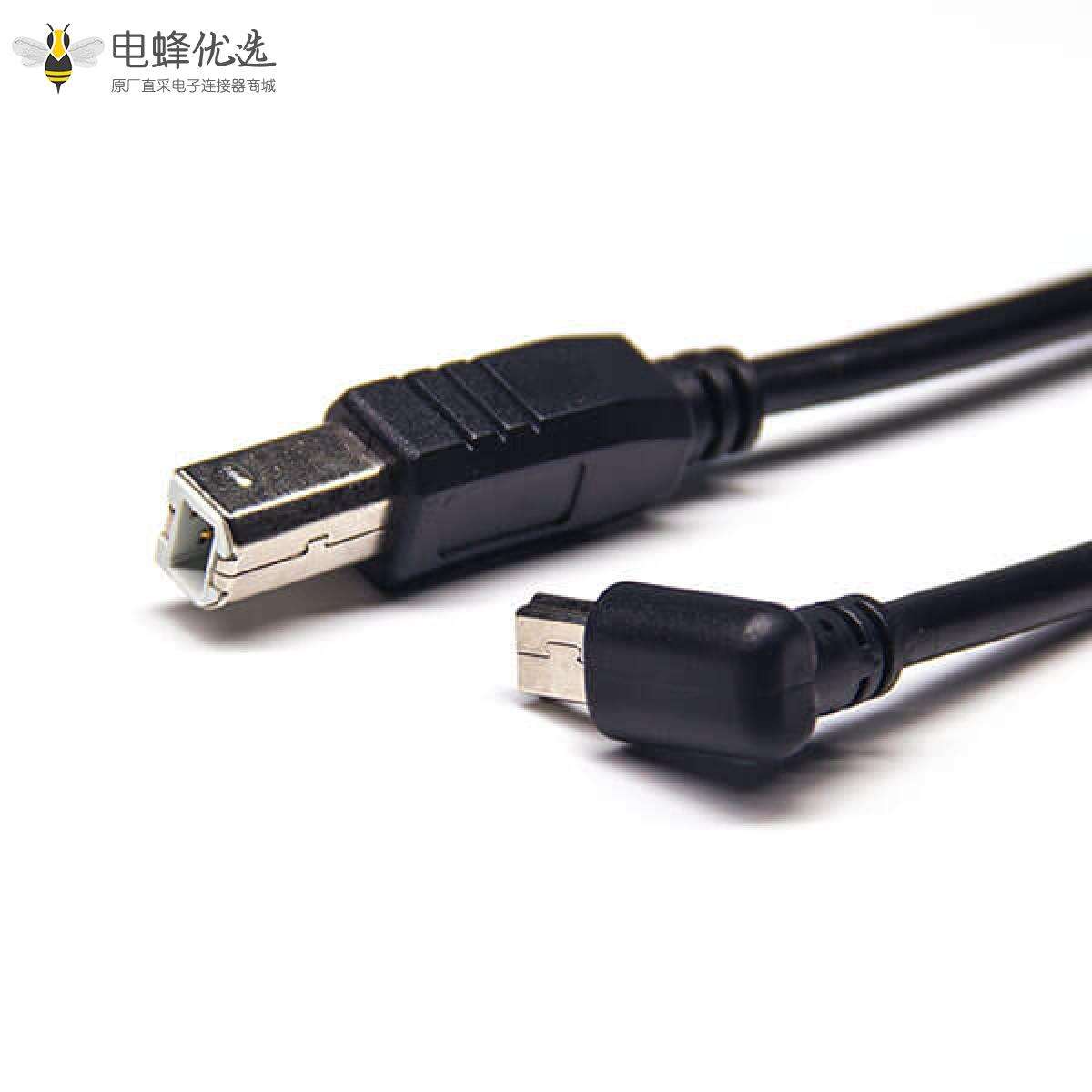 USB2.0线材,USB B,公,直,Mini USB,公,上弯;
