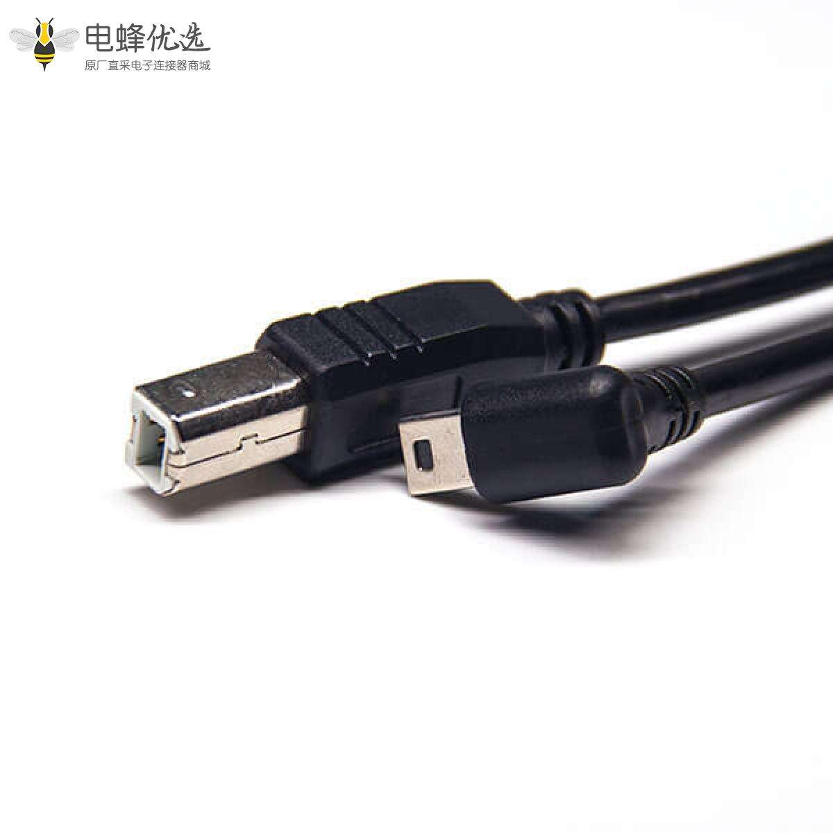 USB2.0线材,USB B,公,直,Mini USB,公,下弯;