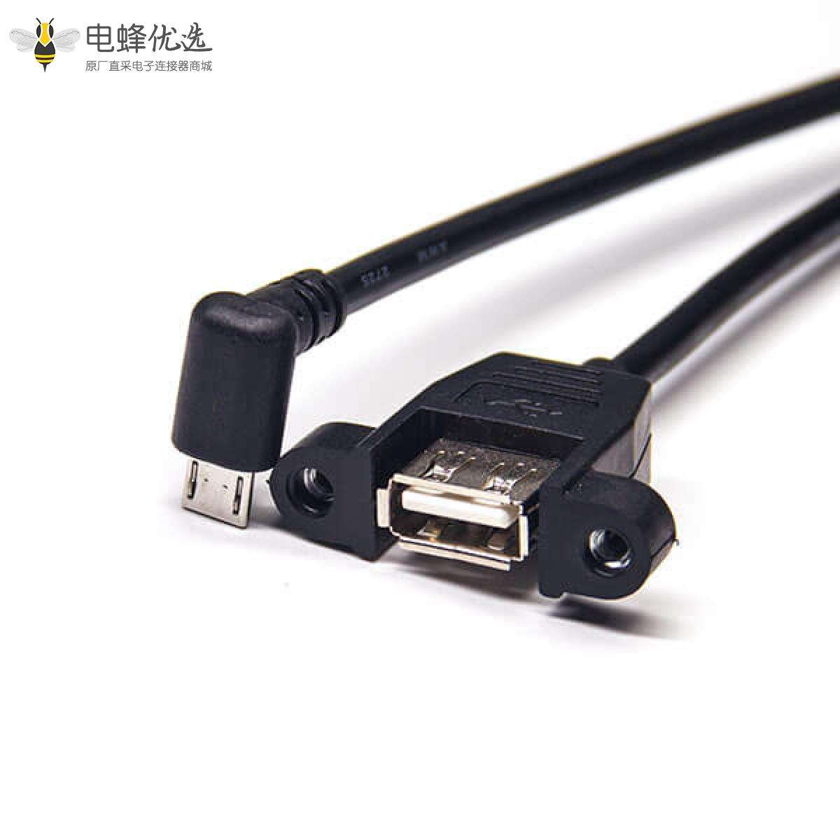 USB2.0线材,Micro USB,公,上弯头,USB A,母,直;