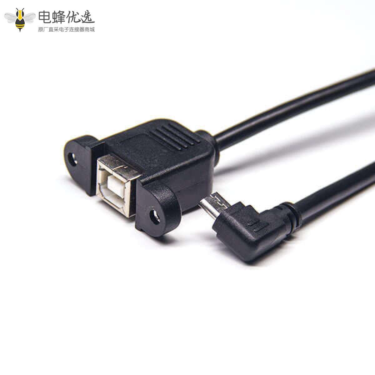 USB2.0线材,Micro USB,公,左弯,USB B,母,直;