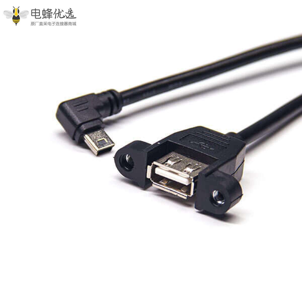 USB2.0线材,Mini USB,公,右弯,USB A,母,直;