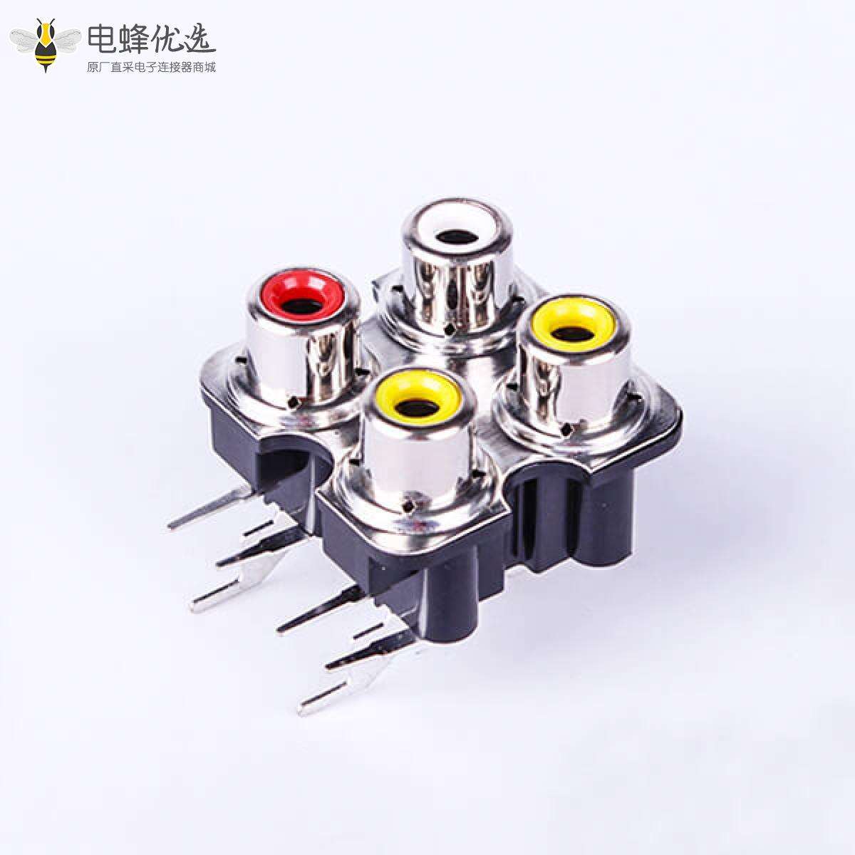 RCA音频连接器4孔90度AV音频莲花座AV接口