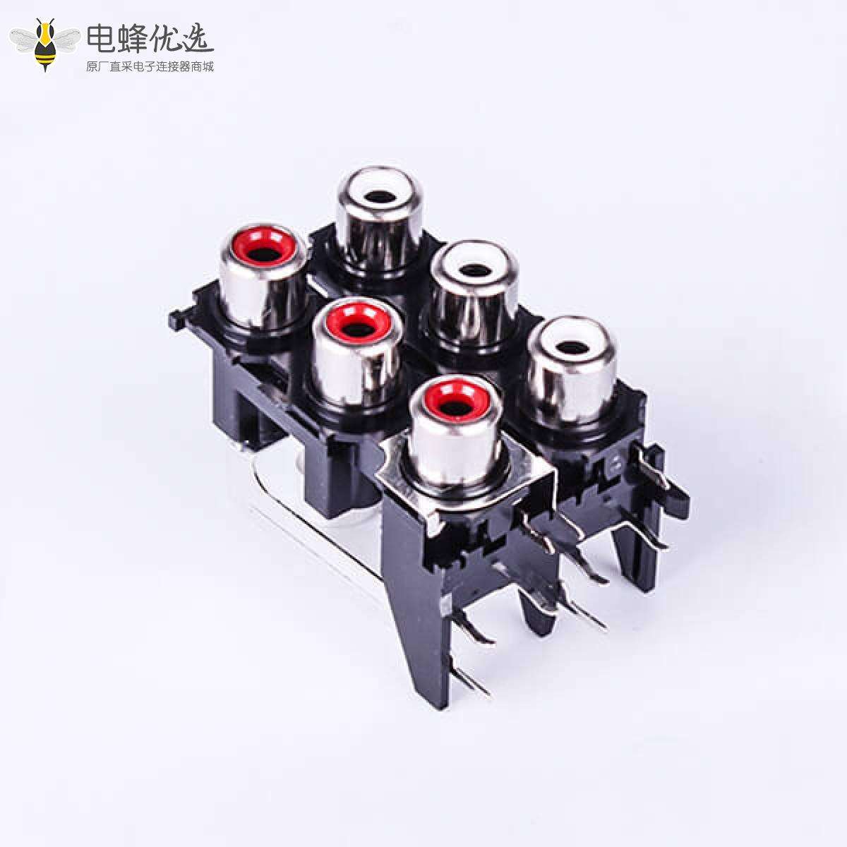 RCA连接器,母,插座,90°弯式,6孔,2*3,接板,焊板,塑胶ABS.PBT,镀镍;
