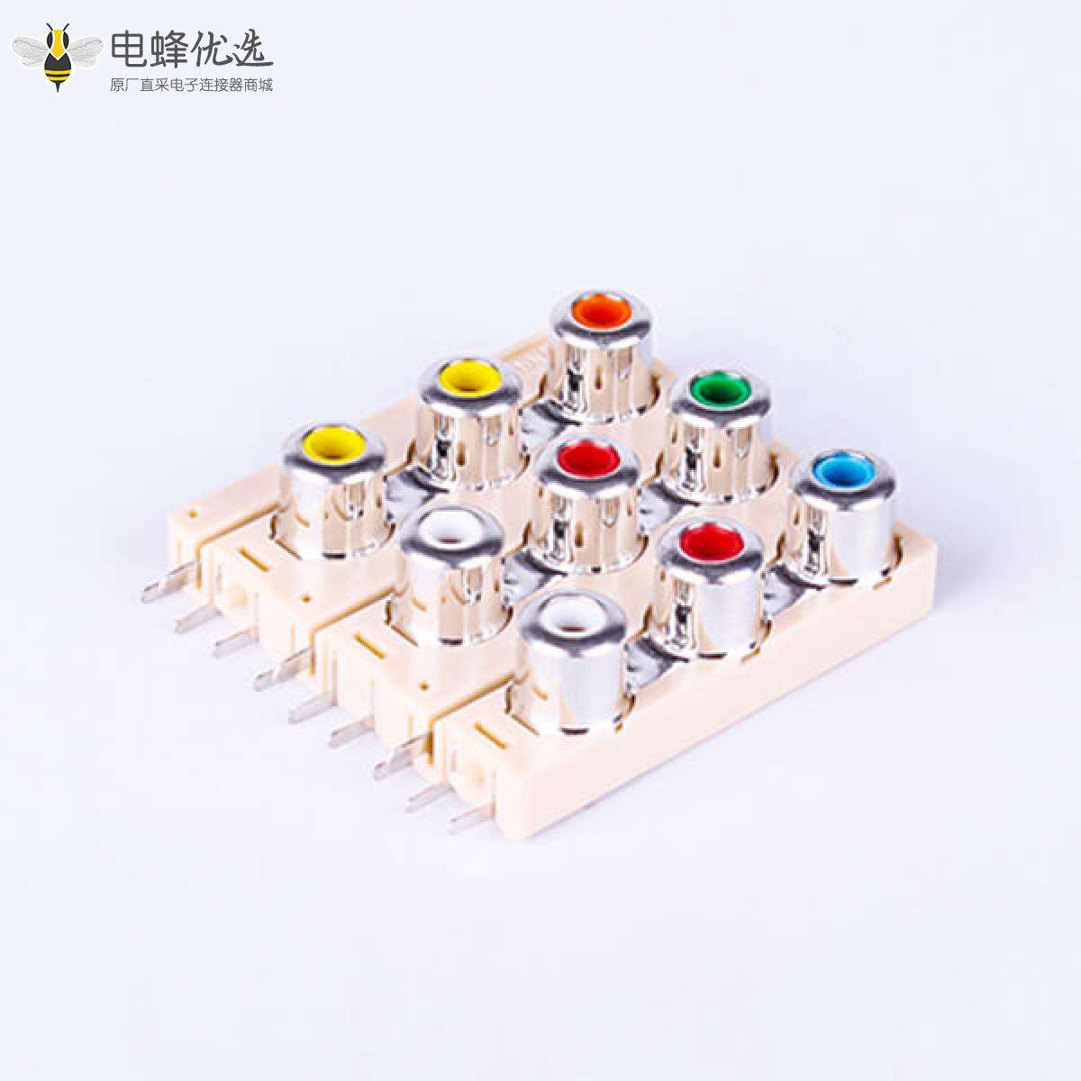 RCA连接器,母,插座,90°弯式,9孔,3*3,接板,焊板,白色塑胶ABS.PBT,镀镍;