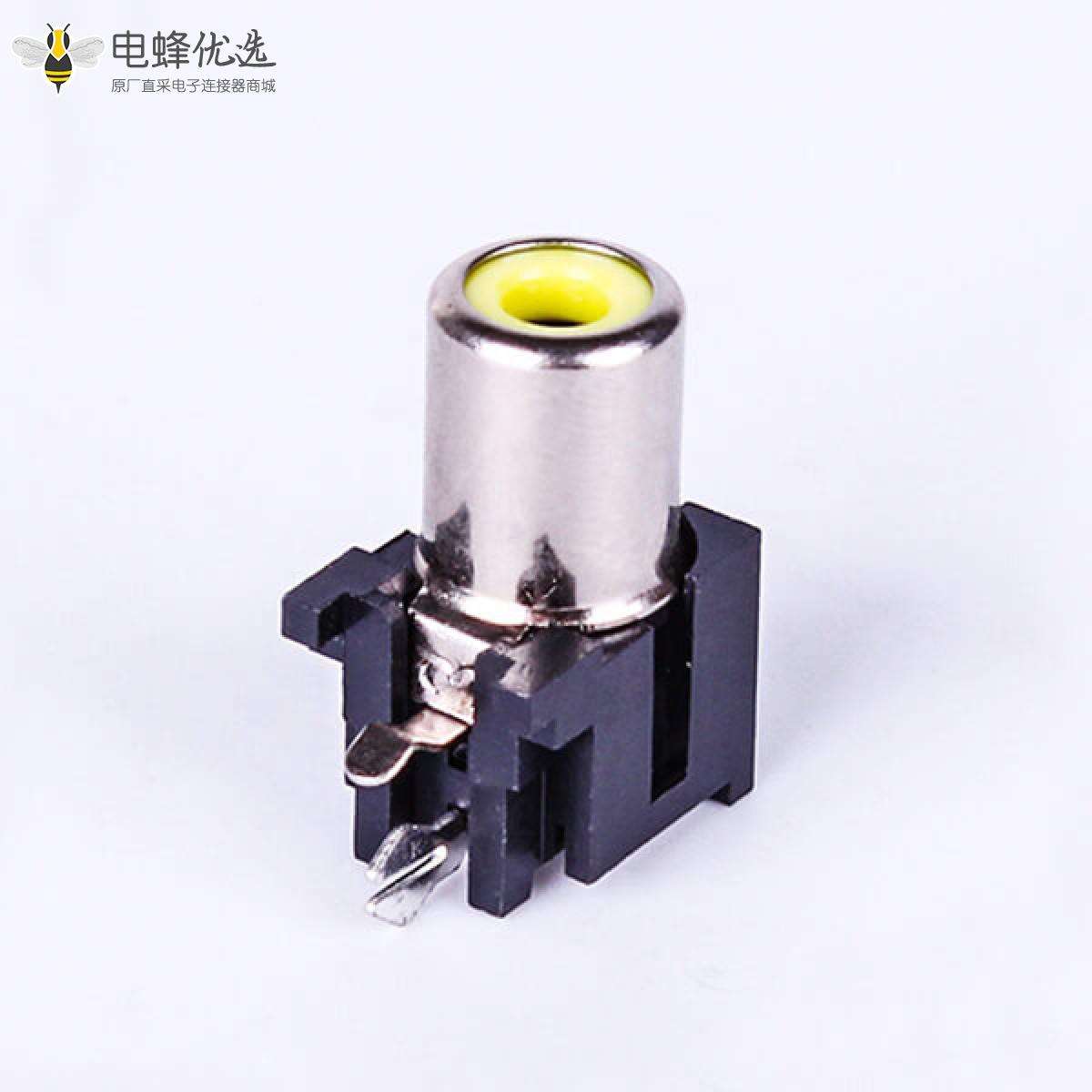 RCA连接器,母,插座,90°弯式,单口,接板,焊板,黑色塑胶ABS.PBT,镀镍;