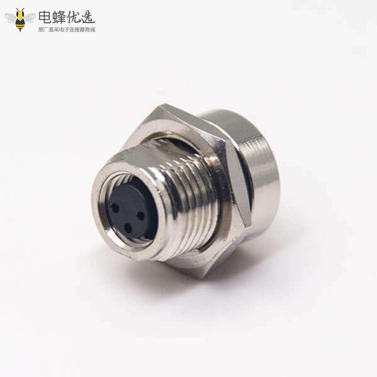 - M8,3芯,板端插座,母头,直头,面板安装,前锁板,插PCB板;