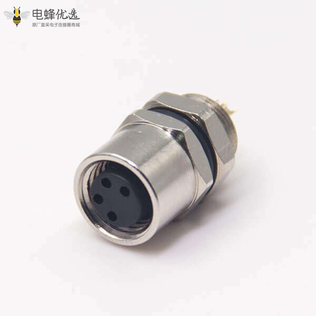- M8,4芯,板端插座,母头,直式,前锁板,面板安装,焊线;