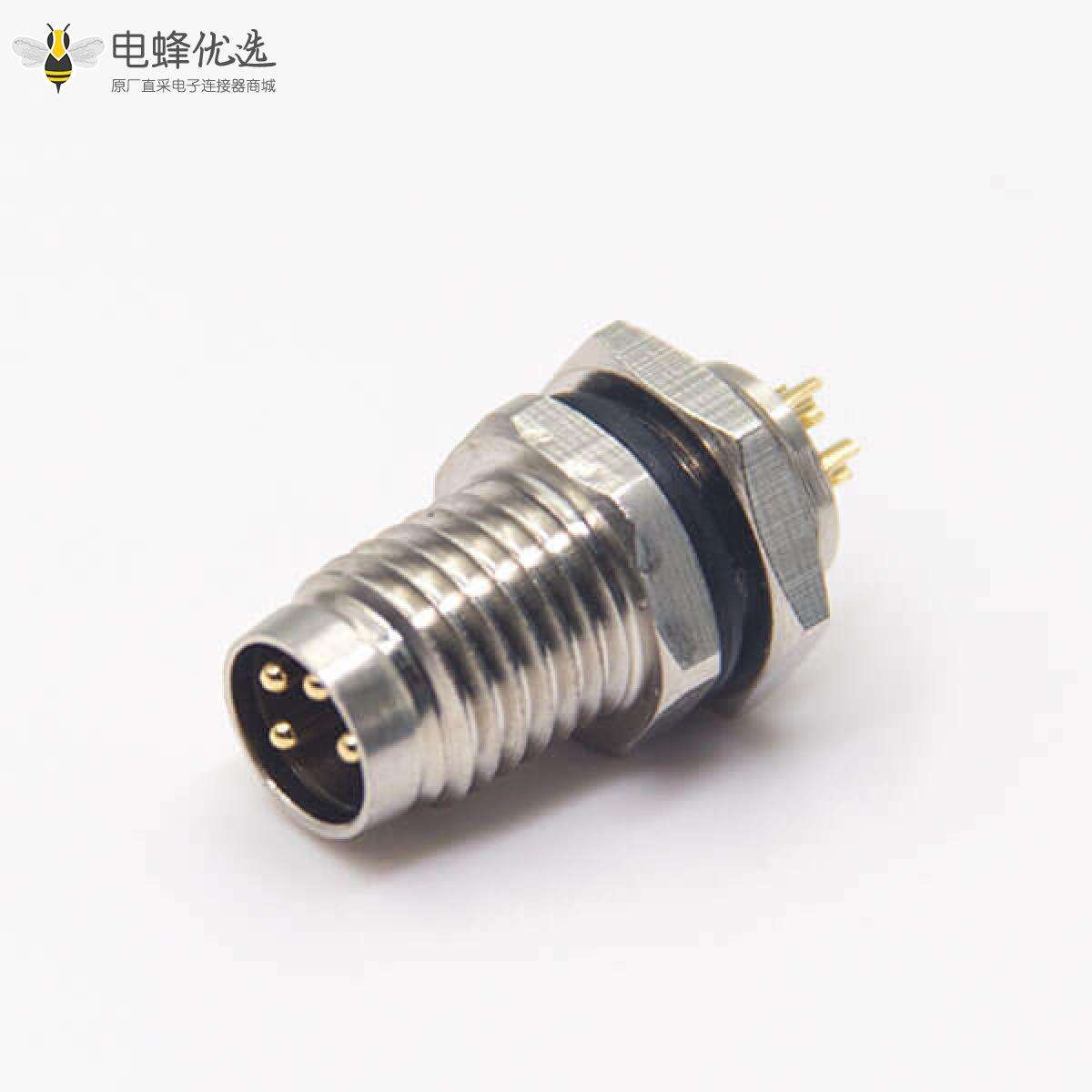 - M8,4芯,板端插座,公头,直式,前锁板,面板安装,焊线;