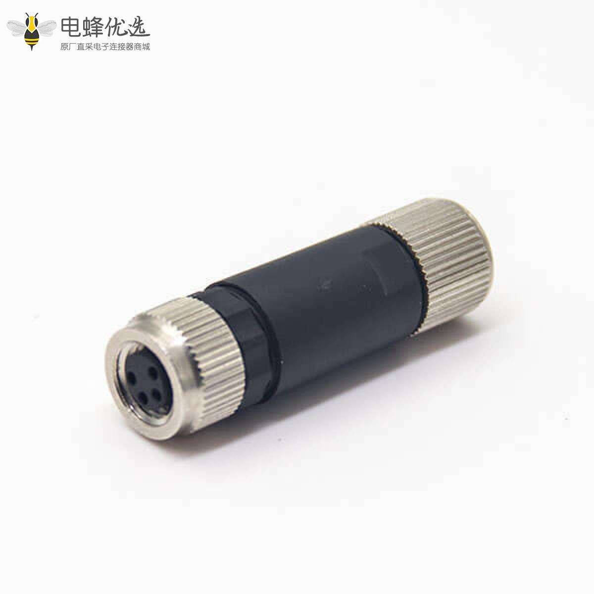 - M8,4芯,组装接头,母头,直头,接线,螺丝锁线,带屏蔽;
