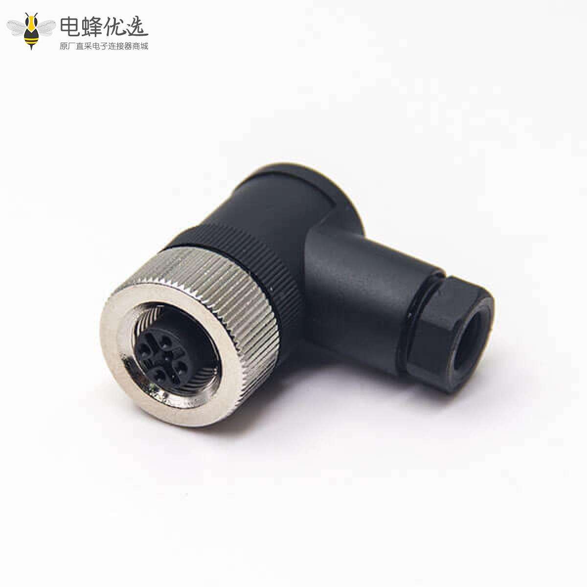 M12,组装接头,A编码,4芯,弯式,母头,接线,螺丝锁线,不带屏蔽;