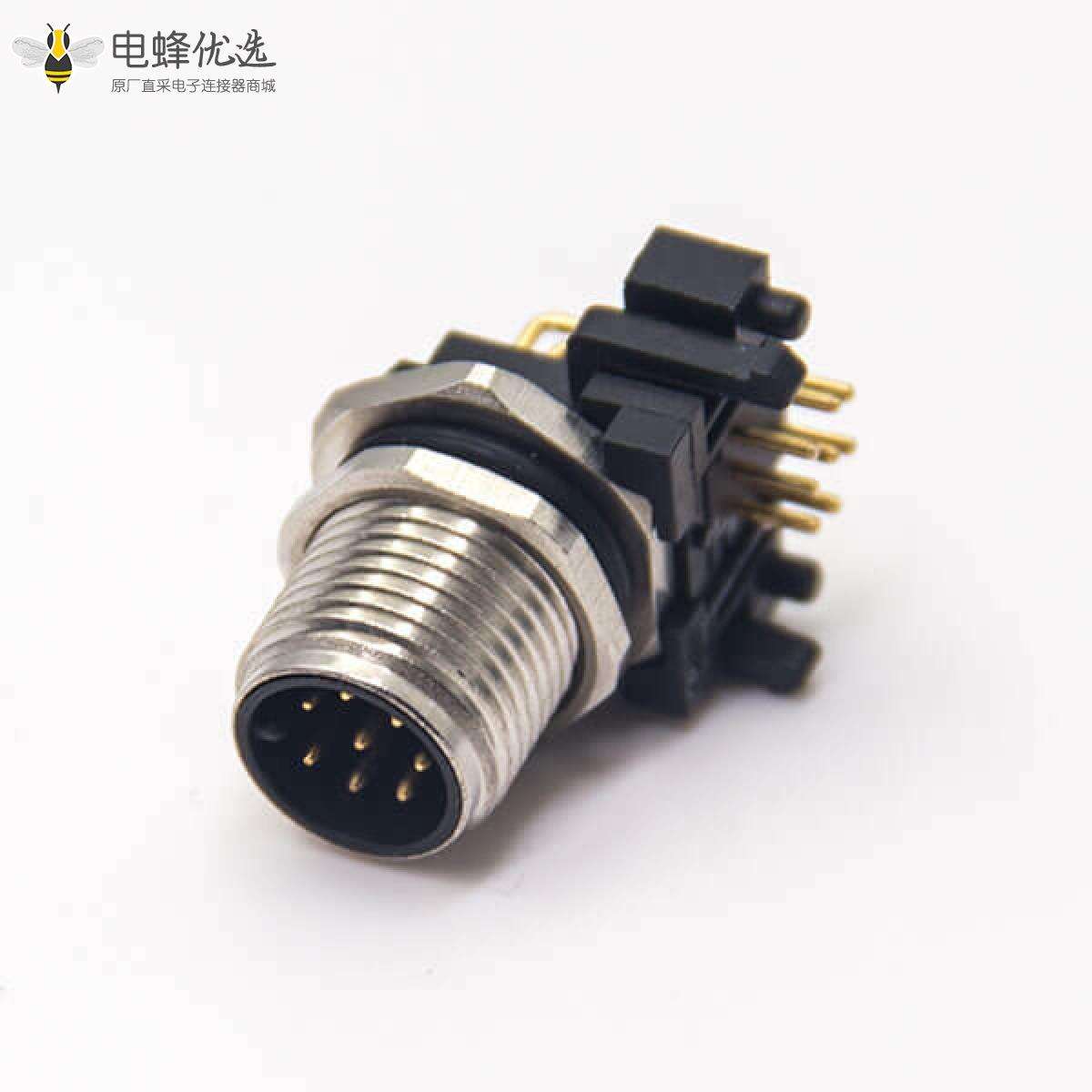 - M12板端插座,A编码,8芯,弯式,公头,插板,前锁板,面板安装;