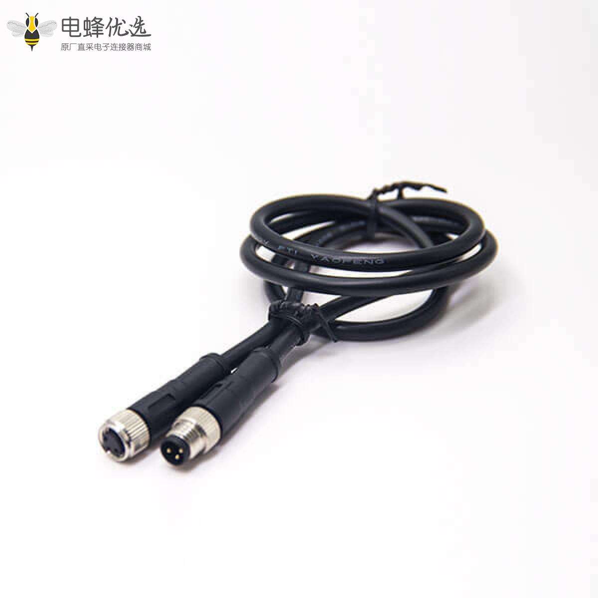 M8,3芯,A编码,线束,公转母, 双边线,直式,焊线,不带屏蔽;