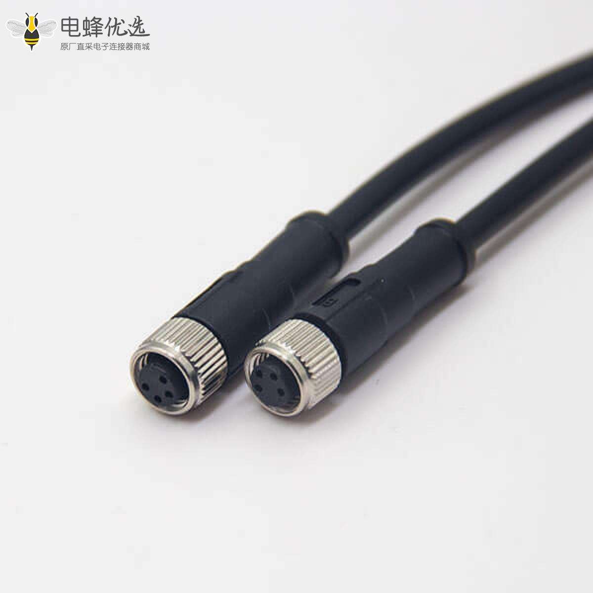 M8,4芯,A编码,线束,母转母, 双边线,直式,焊线,不带屏蔽;