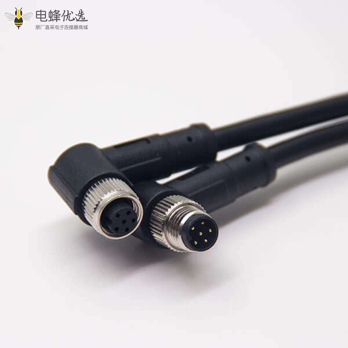 M8,6芯,A编码,线束,公转母, 双边线,弯式,焊线,不带屏蔽 ;