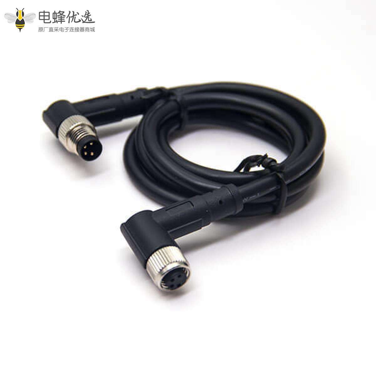 M8,4芯,线束,公转母, 双边线,弯式,焊线,不带屏蔽;