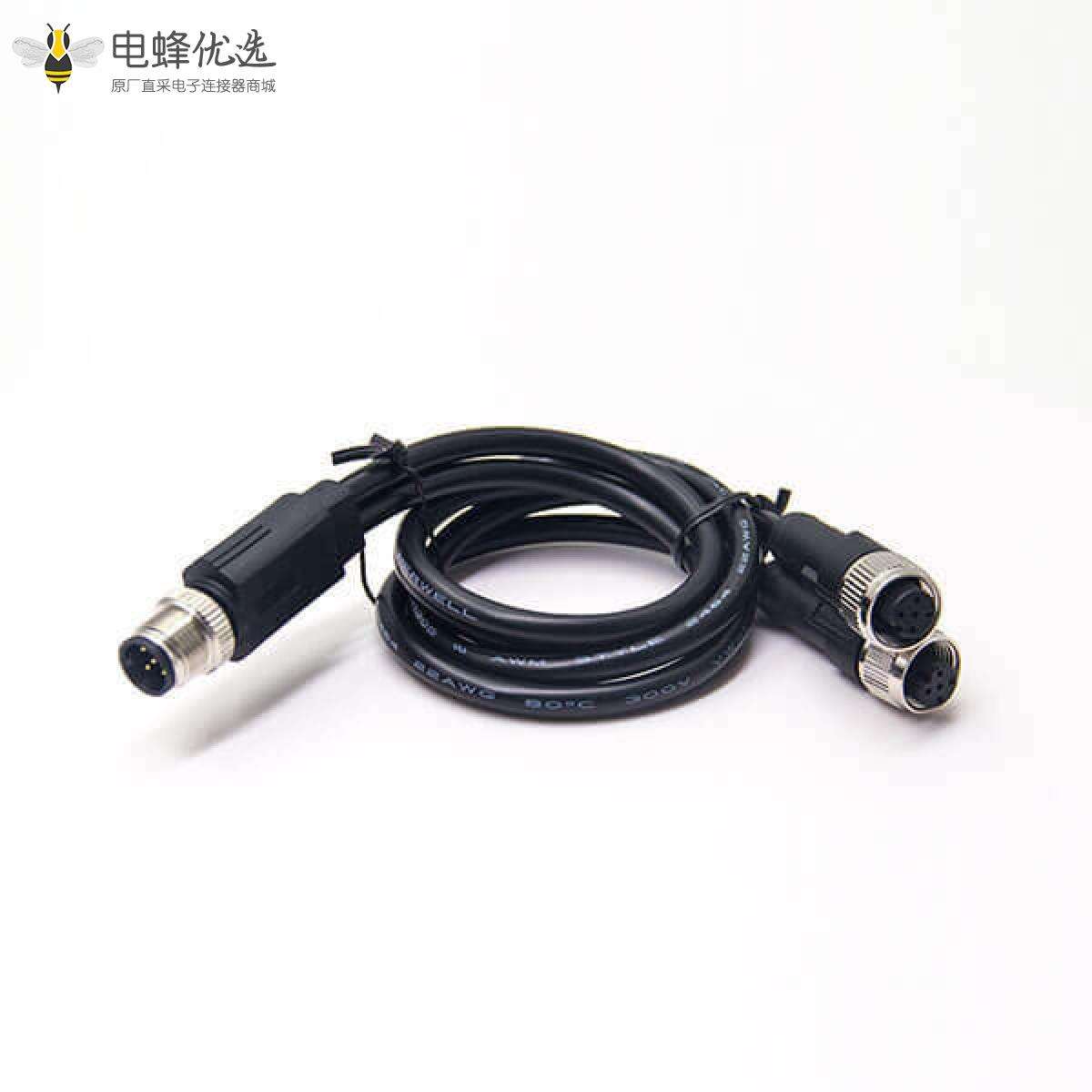 M12,A 编码,线束,5芯,公转母,直式,焊线,双边,不带屏蔽;
