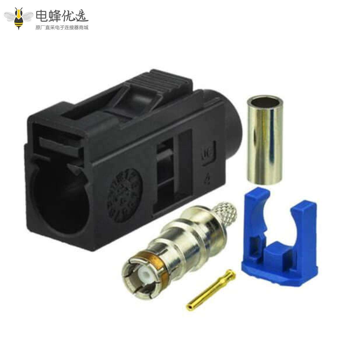 - RF连接器,Fakra连接器,母,直式,50欧姆,压接,接线,RG316,RG174,黄铜,镀镍;