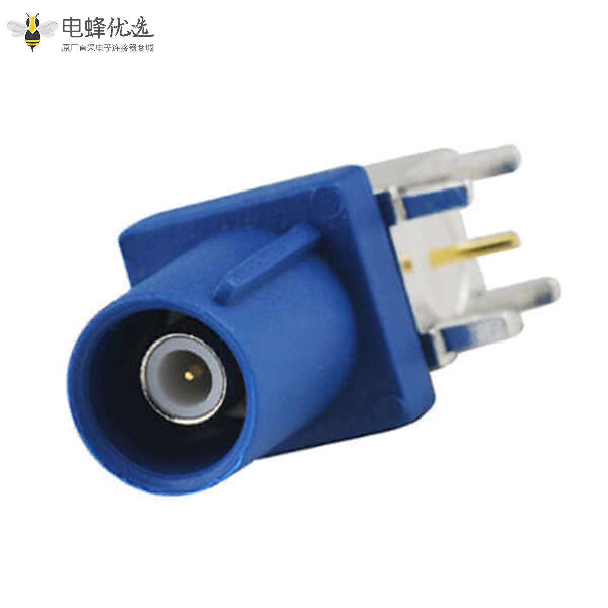 - RF连接器,Fakra连接器,公,弯式,50欧姆,PCB板安装,插孔,黄铜,镀镍;