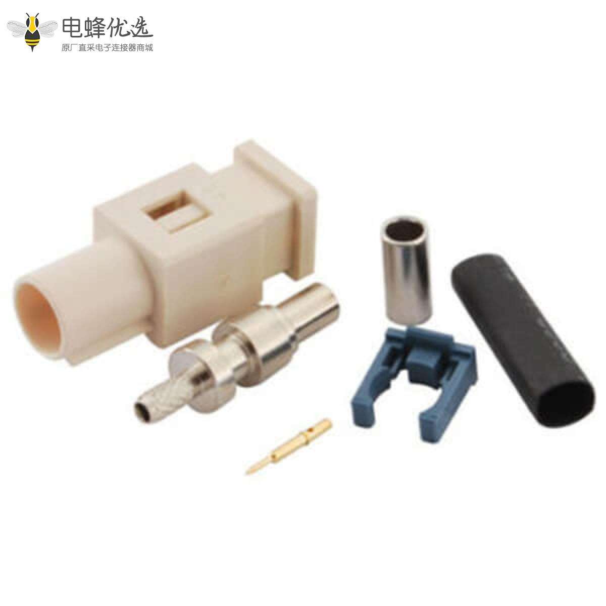 Fakra B汽车收音机直式公头白色压接连接器RG316 RG174