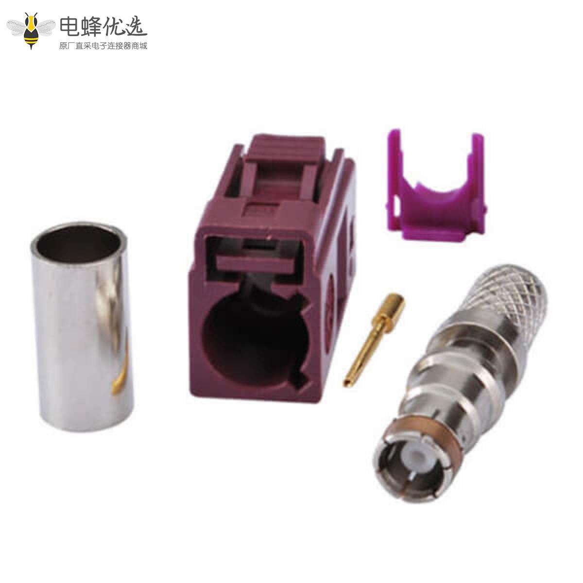 - RF连接器,Fakra连接器,母头,直式,50欧姆,接线安装,压接,镀镍;