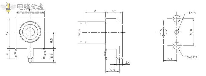 RCA连接器,母,插座,90°弯式,1孔,接板,插板,带支架,ABS.PBT,镀镍;